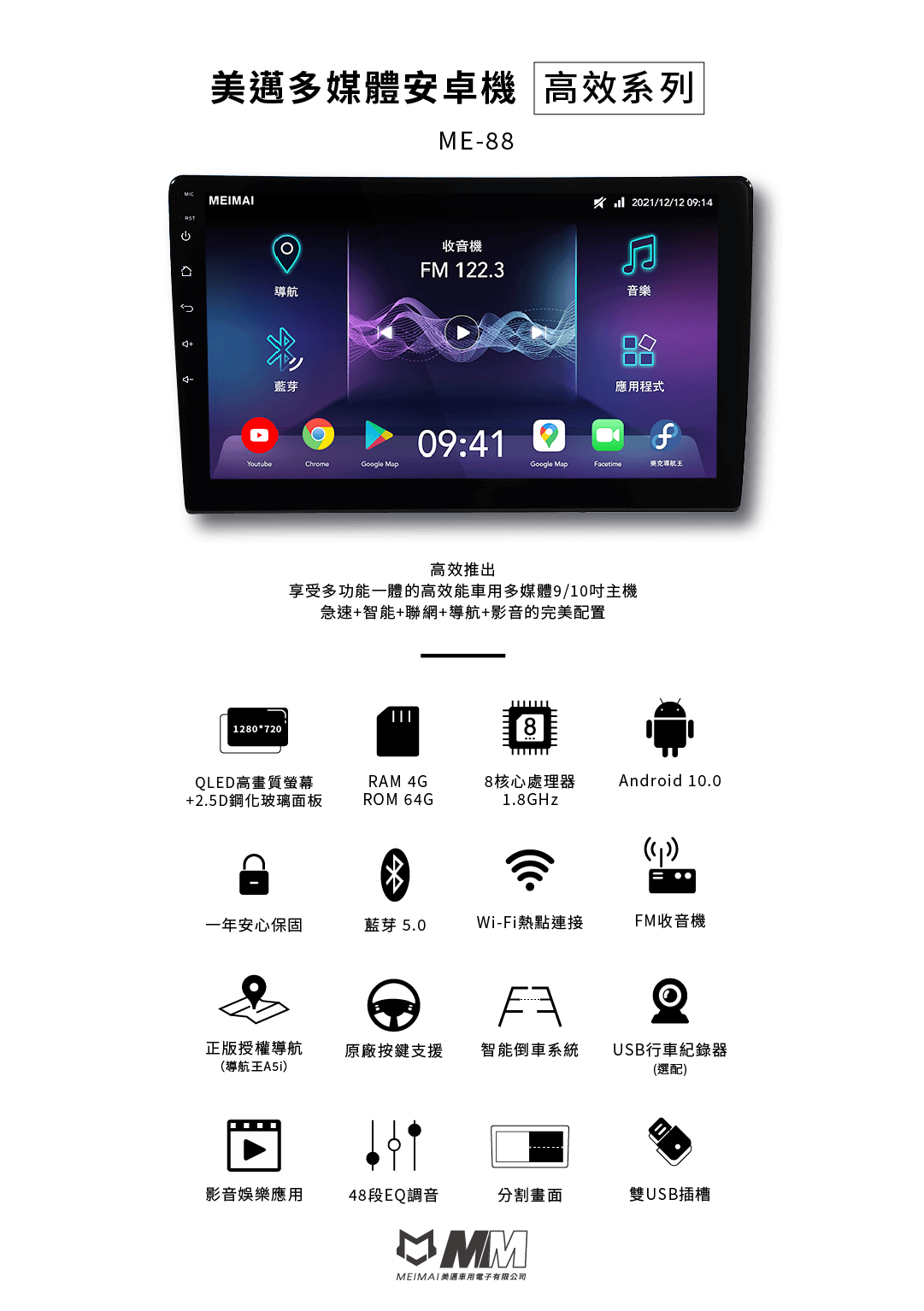 性能卓越、頂尖規格的車用多媒體主機,搭載四顆1080P環景鏡頭和1280*720 QLED螢幕,營造極具威力的視覺體驗